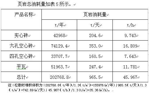 1963年,我国尚未建设大型页岩砖瓦生产线时,就为阿尔巴尼亚沃拉页岩砖瓦厂作了设计方案,虽然这些方案与现代设计有较大差别,但其“工艺计算书”写得较详细,现特摘录其中的“页岩原料消耗量部分”作参考。