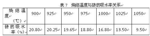吸水率与烧结温度有关,经重庆市某页岩砖厂试验测定,结果如表7所示。