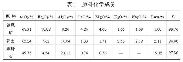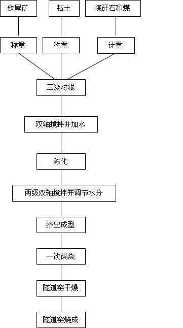 该铁尾矿烧结砖的主要原料为铁尾矿,黏土,煤矸石,煤。