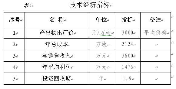 通过简单的经济评价计算,各项技术经济指标优良,表明碳化砖项目有着自身的优势(见表5)。