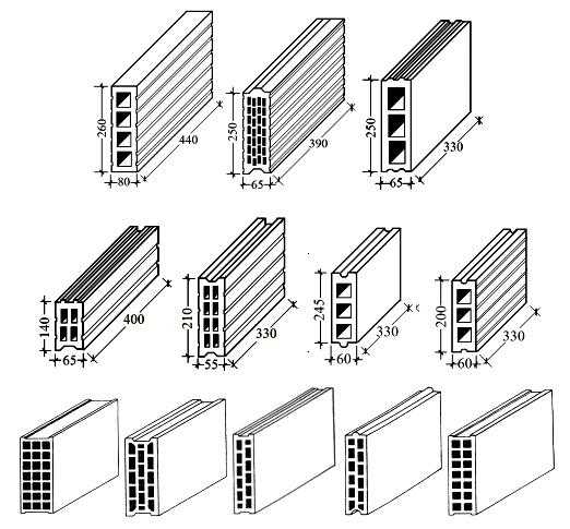 建筑物的内隔墙非常复杂,且形式变化多样。采用水平孔空心砖或空心砌块作为隔墙,因这类产品自重轻、防火、保温隔热,能调节室内小气候,有着长期的尺寸稳定性,便于铺设管道等优点,长期以来被西欧各国广泛使用。如意大利就生产和使用着各种各样的内隔墙空心砖及空心砌块,图41为意大利生产的部分内隔墙空心砌块。