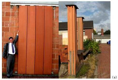 (a)和(b)为意大利生产的隔墙用空心砌块;(c)和(d)为奥地利维也纳山公司生产的垂直孔内隔墙空心砌块;(e)德国艾森砖瓦研究所试验用的层高空心条板;(f)法国生产的垂直孔空心砌块(图片来自法国Michel Kornmann著《Clay bricks and tiles, Manufacturing and properties》)。