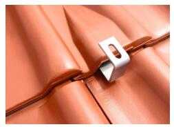 因为屋面是暴露在外部的环境下,而且呈倾斜的坡度,同时经受着风雨的影响,因此太阳能收集板必须要安装的牢固可靠。某些公司开发出了专门用于固定太阳能收集板的特制屋面瓦,如在瓦下面预留金属挂件的空间等方式(见图49)。