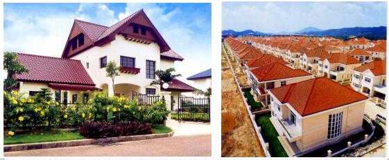 现代烧结屋面瓦是美化建筑物的重要手段,也是解决屋面漏雨、建筑物顶盖保温隔热的重要措施。图55为广州嘉泰公司部分屋面瓦工程的应用效果。
