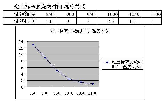 在温度升温达到850℃及以上,砖瓦进入烧结阶段,温度越高,烧成时间越短;反之,温度越低烧成时间越长。烧结砖的烧熟程度与温度和烧结时间关系如下: