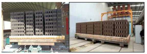 垛体的结构形态对火行的速度也有不可忽视的作用。“上密下稀,边密中稀”是坯垛码放的大原则。这样在焙烧时砖垛的中部温度才不会过高,边沿处才不会温度过低。另外还要兼顾到预热带坯垛的预热等。具体稀密程度如何,不能一概而论,这要视各自企业情况才能定夺。