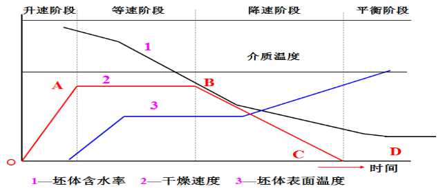 在干燥介质稳定的情况下,坯体不发生化学变化时,坯体干燥可分为四个阶段: