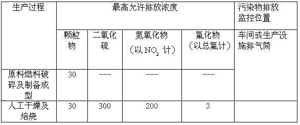 标准规定的 新建企业大气污染物排放限值 单位:mg/m3