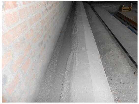 (1)点火后由于窑炉排除大量的水分,操作不当时会造成部分水汽凝结成水随着窑墙内壁进入砂封槽(见图4)。特别是一次码烧的隧道干燥室,由于没有烘窑和后续的高温条件,水分聚集短时间内后很难排除,再经过倒窑砖坯碎块和窑车运转的拌混,会在槽内形成泥状,当其干结后难以清除。这种情况虽不影响窑车运转,但严重阻碍砂子流动,造成“肠梗阻”,这时由于已进入生产运转阶段,很难观察到,为今后生产带来隐患;