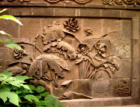 荷花砖雕(尺寸约1.8×1.2米,照片摄于西安清真大寺)