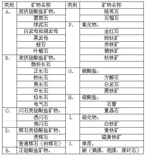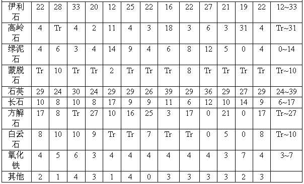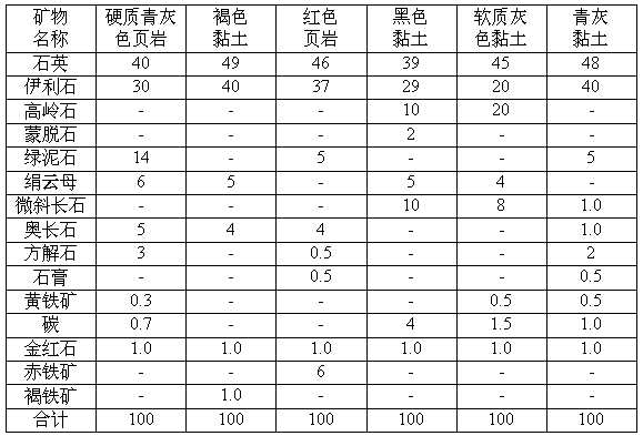 注:表中斜字体为黏土矿物;其余为非黏土矿物。