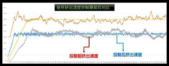 挤出泥条速度在线监测控制器通过对挤出机电动机速度的控制,稳定了挤出泥条的速度,提高了生产过程的连续性、稳定性;限制了超速现象,预设的挤出泥条速度就可以尽可能的提高并接近下游切、码、运设备的最大安全运行速度,提高了生产效率,减少了停机的概率; 同时也对挤出机的运动部件如主轴、主轴承、减速机、电动机、离合器等起到了很好的保护作用,不但可延长挤出机的使用寿命,也延长了下游设备的使用寿命。