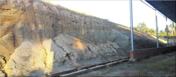再简略谈谈这里的做砖原材料以及燃料。做砖原材料以灰砂岩为主,内燃料为原煤。灰砂岩的典型特征是吸水性特强,太阳下暴晒也仅仅能晒干表皮,而且一旦表皮结硬壳,里面的水分根本排不出去。其烧结温度范围偏窄(仅为±30℃,超出这一范围高则过火,低则欠火),烧成操作难度很大。灰砂岩如下图所示: