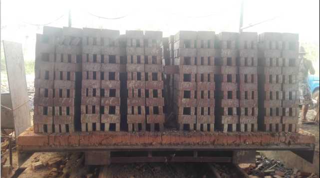 经过以上的改进后,基本达到了既最少投入又收到最佳效果的目的。调试期间,从18号位拿出坯垛中部的砖坯测试水分,共29次的数值平均值为3%,比预想的干燥效果还好。坯体进入24号位时就能达到约600℃,进入28号位的预设高温区时温度达到950℃上下。由于使用的是挥发分比较高的燃料,有起火快熄火快的特性。所以,砖出窑的温度也仅仅是95~120℃。调试结束将两条改造后的生产线交付业主前所出产品如下图: