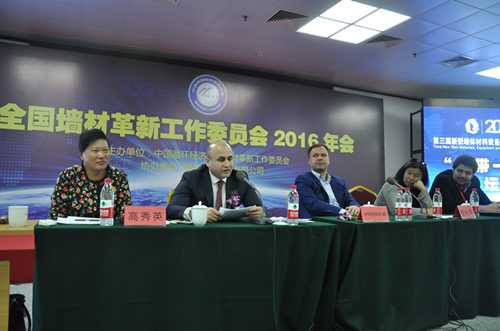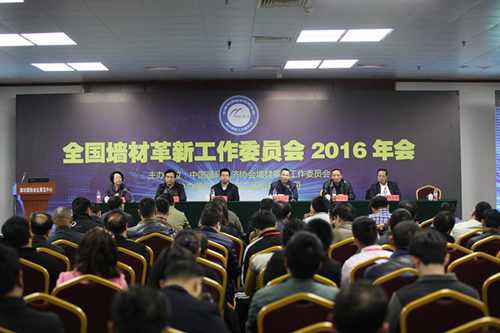为落实生态文明建设,推动节能减排、绿色建筑和建材发展,展示国内外新型墙材节能、节地、环保的最新装备和技术成果,引导新墙材企业提高产品质量水平, 3月30日~4月1日,由国家有关政府主管部门指导,中国循环经济协会墙材革新工作委员会主办,全国各省(自治区)、直辖市墙材革新和建筑节能管理办公室协办的全国墙材革新工作委员会2016年会暨第三届全国新型墙体材料装备及配套产品展览会在河北廊坊召开。会议由全国墙材革新工作委员会会长滕军力主持。