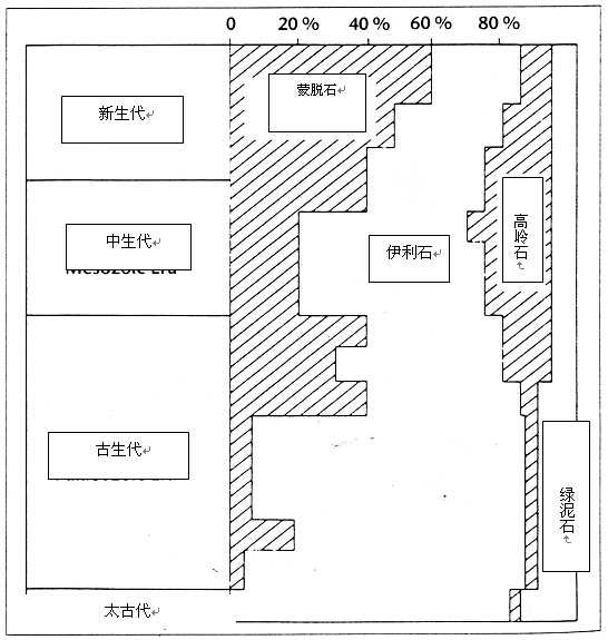 首先,应该知道任何一种黏土矿物的生成是与它所处的地质年代以及所经历的地质条件有关。那么,在原材料选择时应对拟选区域的地质年代有一个明确的概念。也就是说不能忘记地球形成历史上的各主要地质年代。例如从中生代到古生代(年龄:从1.37亿年到3.5亿年)期间形成的黏土(含页岩、煤矸石等)经历了数百万年之后已经变成了固结的黏土质页岩和黏土岩(如宁夏中部地区叫做页岩的)。因此,主要黏土矿物成分是根据地质年代而在变化的,如图9中所示。从图9中可看到,主要黏土矿物生成的地质年代越近,所显示出的主要黏土矿物出现的几率大小排序是:蒙脱石、伊利石、高岭石。随着地质年代的增加,蒙脱石矿物逐渐由伊利石取代,高岭石由绿泥石取代。图10中表示了黏土矿物出现的丰度与地质年代的关系。实际中,在国内出现问题最多的情况是白垩纪的页岩。白垩纪距今约1.37亿年,又分为为早白垩世和晚白垩世。例如在北京、东北、内蒙等地,就将工厂建在了白垩纪页岩山下,这种经验教训应当牢记。必须保持有这样一个概念,如知道所选择的原材料区域是白垩纪的,就应特别注意原材料中是否含有过量的蒙脱石矿物。