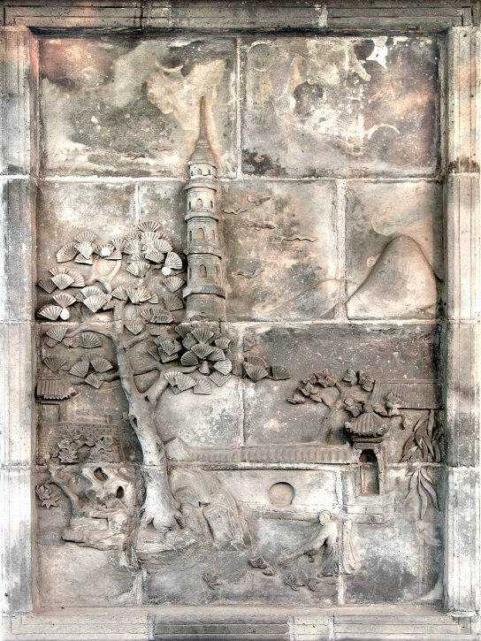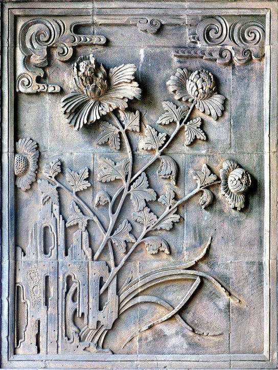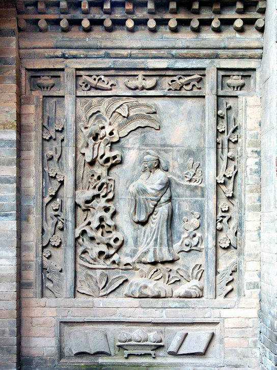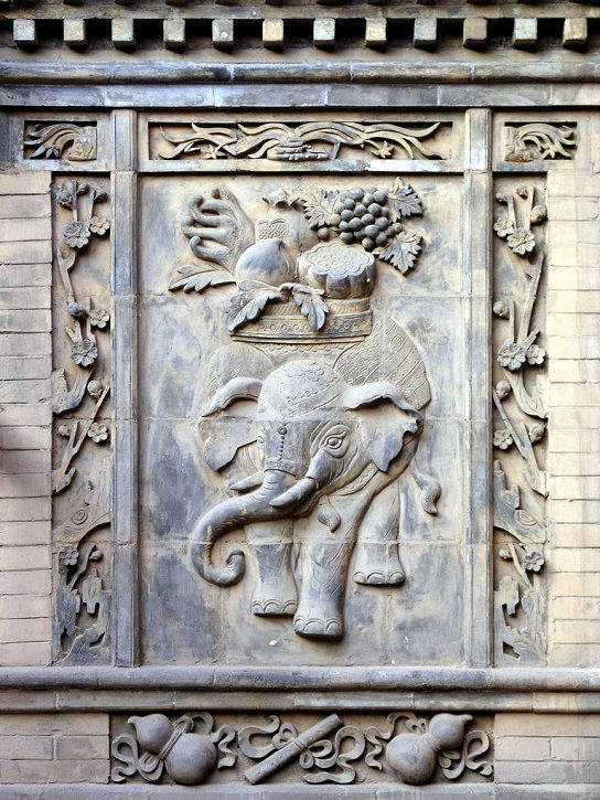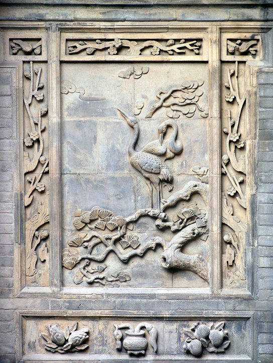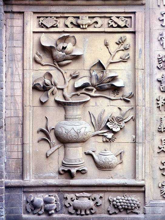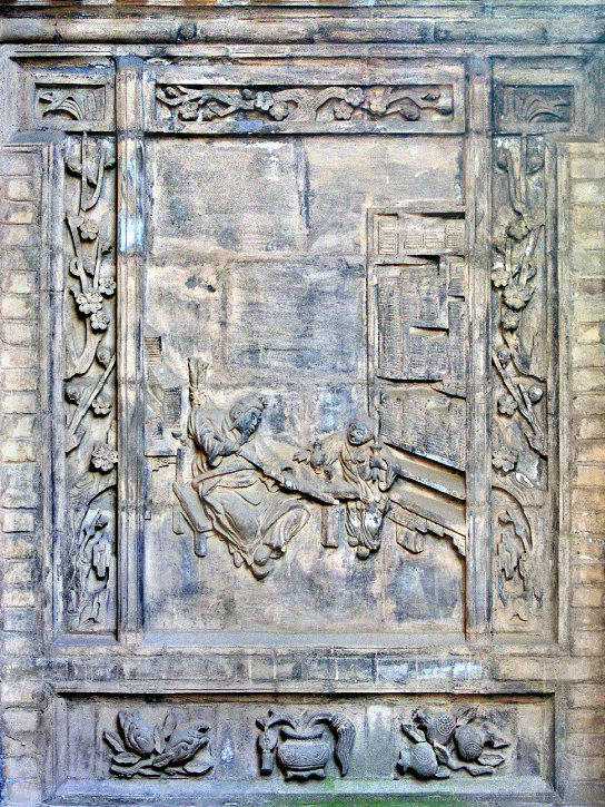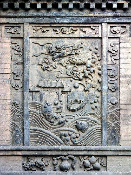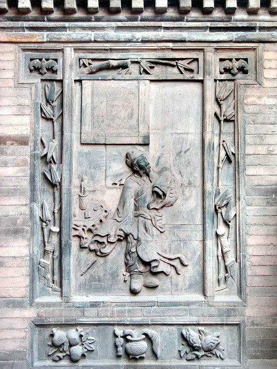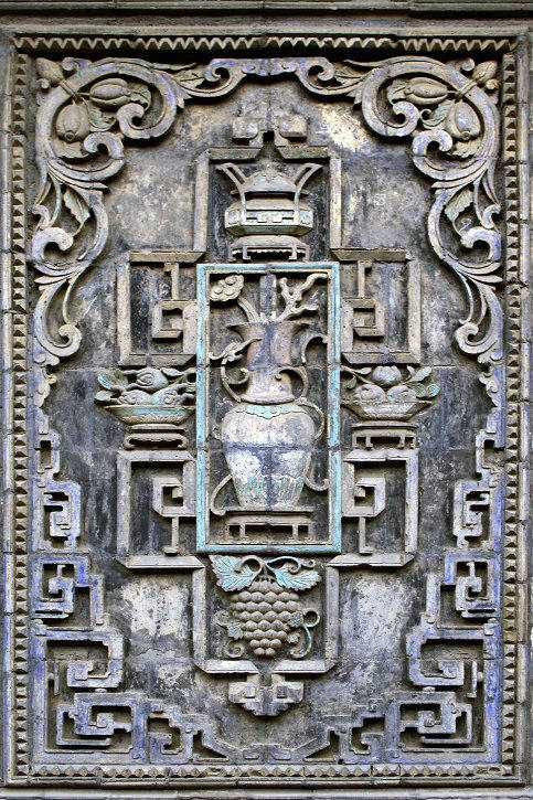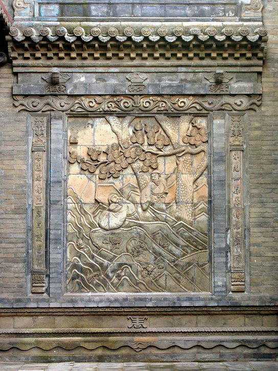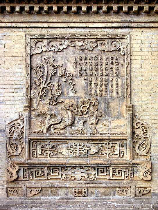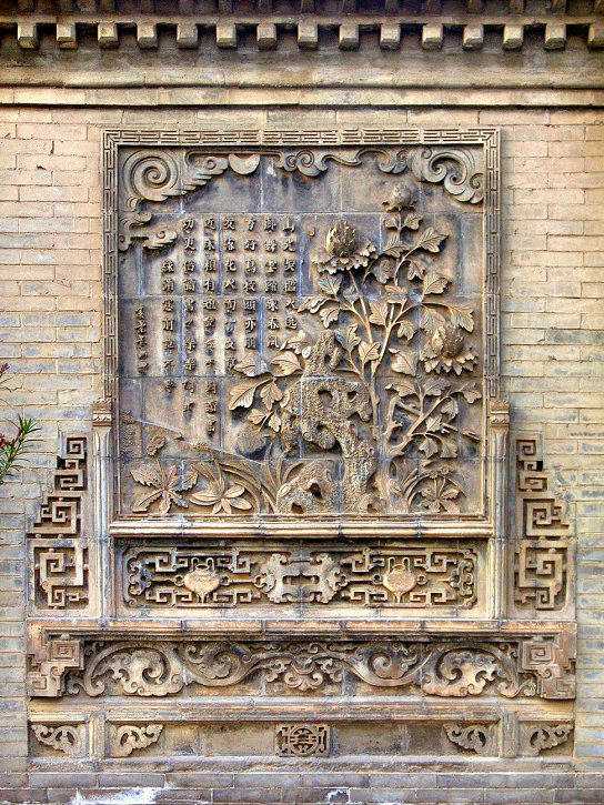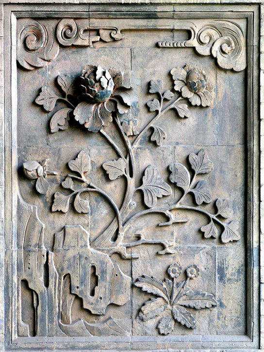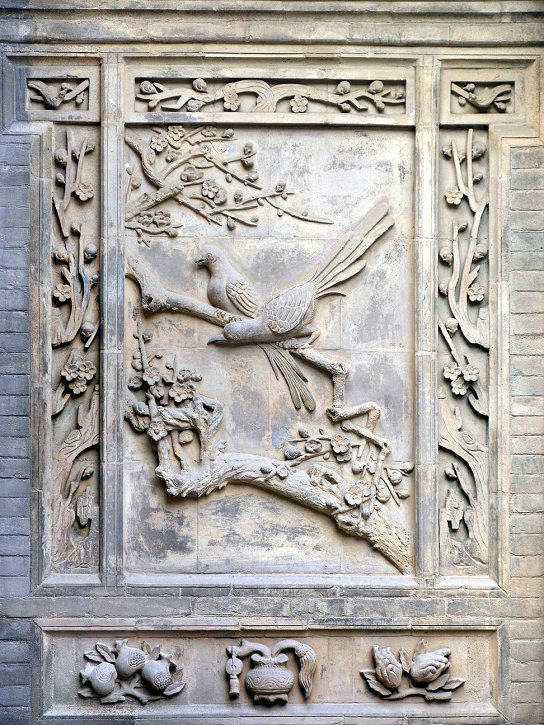 砖雕,是以砖为材料,运用圆雕、浮雕、透雕和线刻等技法雕刻的各种形象的艺术品。从广义上来讲,凡是以砖为媒介的艺术作品都可称为“砖雕”,它包括春秋战国、秦汉乃至魏晋南北朝时期的画像砖、宋元时期的墓室砖雕和明清时期的建筑花砖,这是中国古代砖艺术作品的三个发展阶段。“砖雕”一般是指在成品砖上的雕刻,也称之为“窑后雕”,起源于唐代晚期;而在未烧结的坯体上的雕刻或是模印做出的图案、文字等,称之为“窑前雕”,通常是指画像砖,起源于春秋时期。明清时期是砖雕艺术的鼎盛时期,同时也被广泛运用于民居建筑。该砖雕图案主要为山西榆次常家大院的部分砖雕