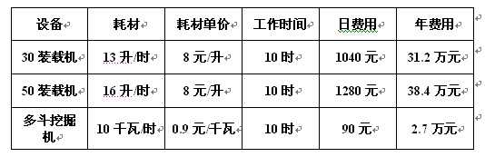 此表显示:选用多斗挖掘机不但节约成本,且原始投资少。