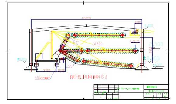 半桥式多斗挖掘机有效的将用于行走轨道的1/3面积基本上节省下来,在同样建筑面积的条件下增大了库容量,但陈化料堆积仍然呈三角形。(三角形的堆积方式相当于空间利用率仅为30%)。每小时上料量基本等同于侧式多斗挖掘机能力。