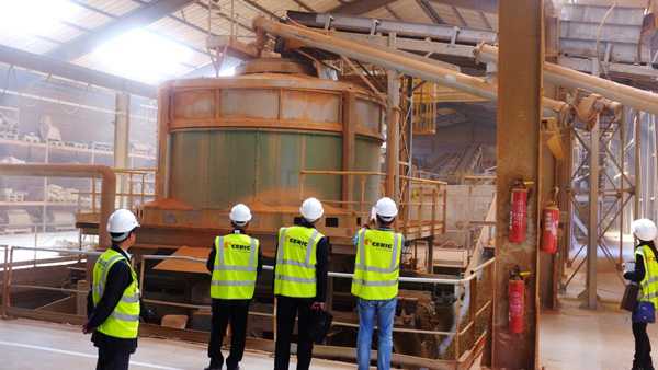 该生产线的主要原材料为黏土。他们非常重视原材料的处理,如原材料入厂的第一道工序就是堆放均化(stockpile),即平铺堆放,垂直挖取。原材料进入生产线后主要处理设备为两道对辊机、大型轮碾机及大型坑式陈化库(图2)。第一道对辊机的间隙为2.5mm,第二道对辊机的间隙为0.8mm。