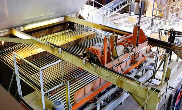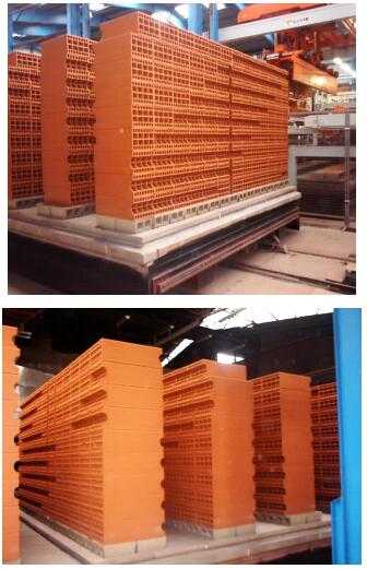挤出泥条经切条、垂直静止切割成坯体后,进入“安卓”快速干燥器单层干燥(图4),干燥周期为2小时。干燥后的坯体编组、运送到码坯设备,码放窑车(图5)。