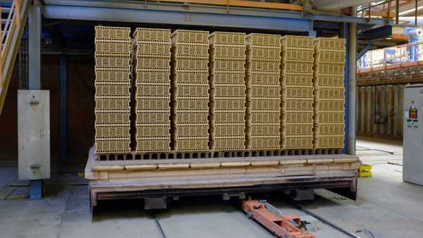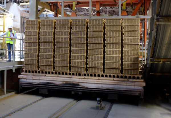 图5 码好坯体的窑车,准备进入隧道窑焙烧