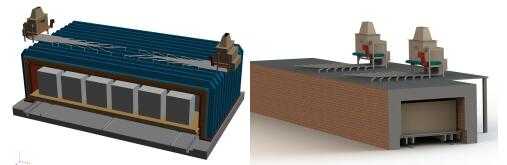 图6 生物燃料燃烧系统以及管道在隧道窑顶上的布置
