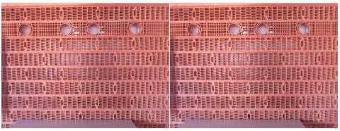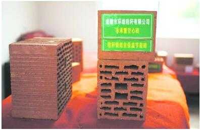 由于生物燃料的燃烧过程中不会释放出有害的气体物质,在隧道窑内的温度达700℃以上时,这些颗粒状的生物燃料喷射进入窑内,其燃烧的特征如同天然气一样。压缩空气是颗粒状生物燃料的运输动力,同时也助燃的空气。助燃空气的量和生物燃料的量是非常重要的控制参数。颗粒状生物质燃料和空气的有效配合,才能提供最好的燃烧效率。压缩空气与颗粒状生物燃料是间歇式的供入到隧道窑内。在燃烧过程中严格控制助燃空气和燃料比至关重要。图11是生物燃料焙烧的空心砌块。