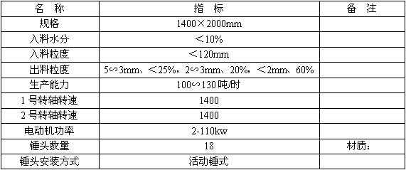 双转子锤式破碎机在工艺安装位置中,前端有鄂式破碎机、后端有回转筛,入料粒度由鄂式破机排料口控制、合格细粉料由回转筛筛孔控制,因此,与单转子锤式破碎机工作要求一样,保持较高破碎产量、提高破碎料中细粉料的比例,是主要目标。