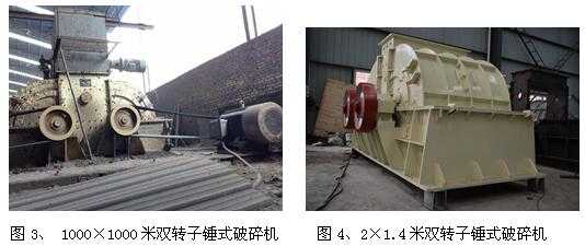 目前,国内双转子锤式破碎机的转子布置有水平布置和高低布置两种形式。