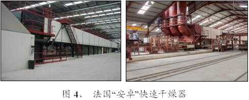 第四,由于多年来对于干燥工艺研发上的缺失,干燥也是目前行业内存在问题最多的一个环节。例如,目前国内干燥脱水耗热1100~1200kcal/kg水,干燥时间很长;而西欧的快速干燥室脱水耗热小于900kcal/kg水,干燥时间仅为2~4小时。总之,适应不同产品类别的干燥工艺以及干燥室的结构形式,我们需要创新的内容还很多,如快速干燥室及配套设备、节能型隧道干燥室及配套设备等等(图4);