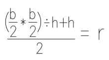 用文字描述时则是“半宽乘半宽,除以高再加高,打个对折后,就是半径了”。