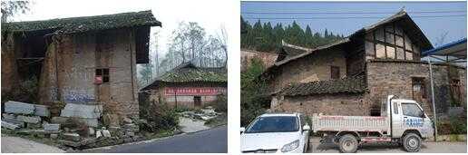 图5 贵州农村中目前还存在的土坯房 图6贵州农村上世纪50年代青砖房
