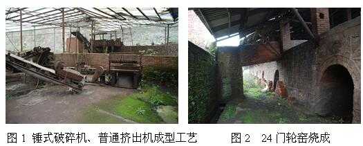 页岩和煤矸石采用锤式破碎机破碎,经搅拌、普通挤出机成型、自然干燥、轮窑烧成的工艺。产品以普通烧结砖为主,能够满足农村建设的需要。