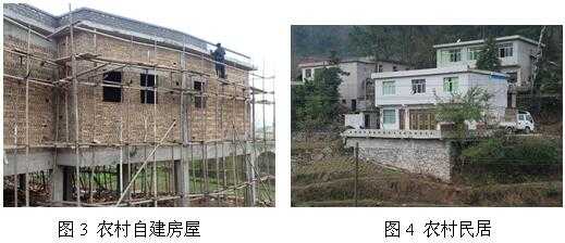 农村居民住房,是在自有宅基地上完全依靠自己建设。住房以砖混结构为主,现浇楼板和屋面板,围护结构基本采用烧结普通砖。即便采用框架结构,由于农村居民对烧结普通砖的良好性能保留着朴素和直观的判断,建设过程中,不会采用非烧结类墙体材料,如图3、图4所示。