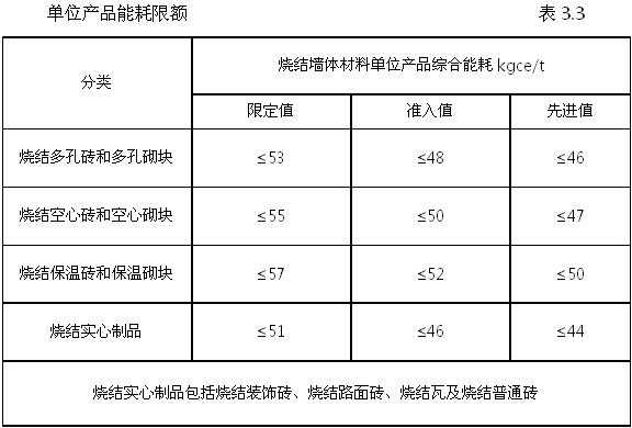 项目设计工程中要重点考虑节能与环保。《烧结墙体材料单位产品能源消耗限额》(GB30526-2014)对单位产品能耗限额规定,如表3.3。