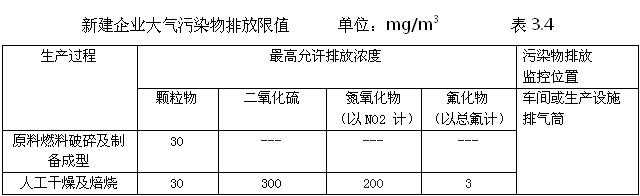《砖瓦工业大气污染物排放标准》(GB29620-2013)对新建企业大气污染物排放规定如表3.4。