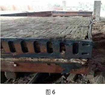 题。60%框砖不是相互撞坏就是被面砖、顶坏、顶掉,要换掉这60%以上框砖,也需要一笔不少的款额,既影响产量质量(如图2、图5),又加大支出。