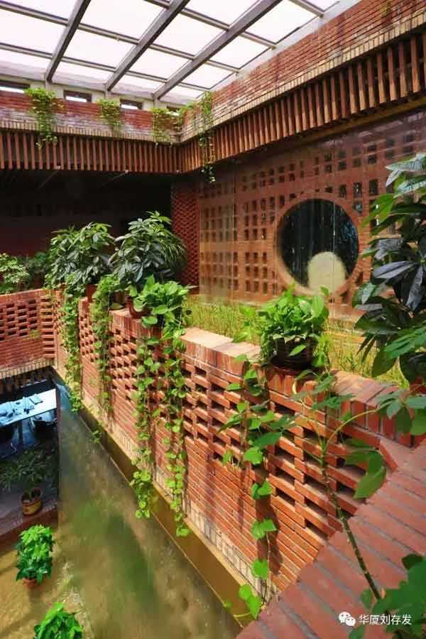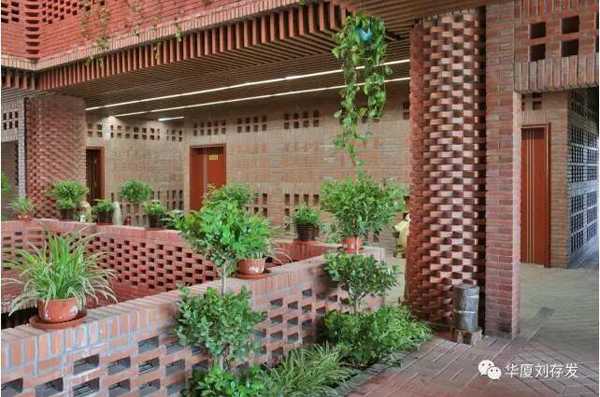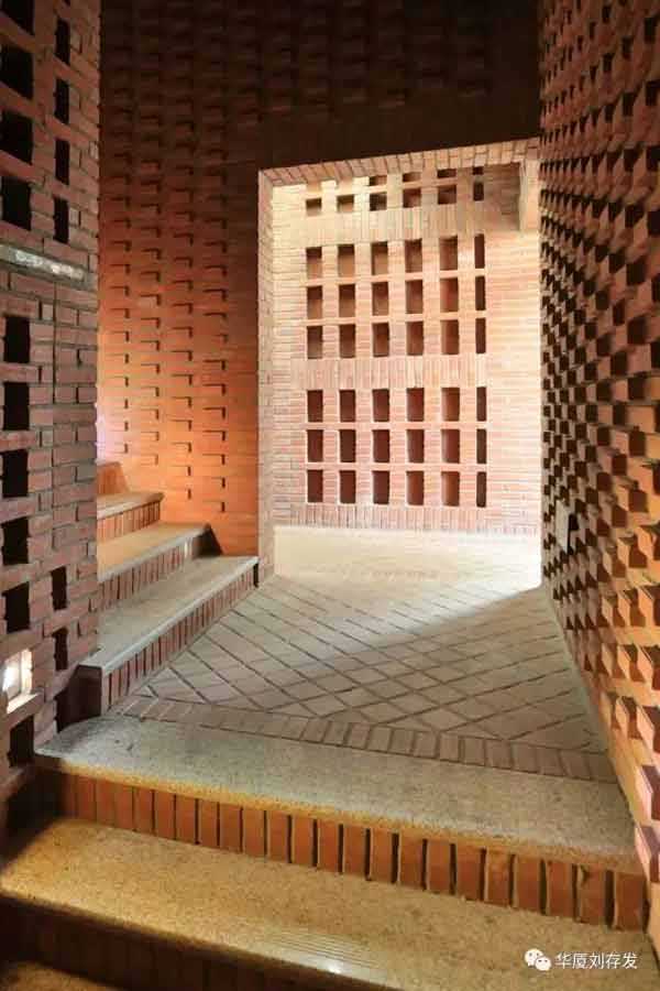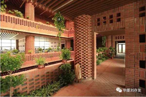 建筑面积2117m²。建筑采取现代建筑语言,通过大片实墙与玻璃的虚实对比以及几何体转换,达到了建筑的形体美,也解决了建筑的遮光、采光问题。建筑借助屋顶植物栽培,中庭瀑布水景、采光顶,室内大面积绿植,也创造了优美环境。同时,将千百年来古老、传统,不变质、不变形,不褪色,没有维修费用的红砖融入现代建筑中。红砖经过人工精致组合,或出挑,或镂空,结合清水混凝土,使看似传统的红砖砌筑的建筑细部,更加丰富精美,为现代建筑增添了新的视觉符号,提升了建筑的外观装饰的审美情趣。更具特色的是建筑的空调设计,在夏季直接将地源冷水进入地盘管循环;地下消防水池水与室内瀑布结合形成水帘,达到了降温的目的,也满足了室内舒适度要求。建筑还利用太阳能光伏发电技术、围护结构保温节能技术等,使该建筑达到了三星级绿色建筑设计标准,建筑能耗超低,近于零能耗。