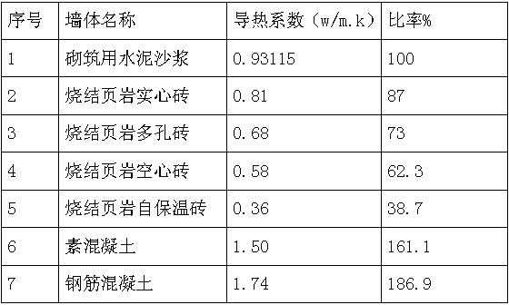 在建筑墙体中,水泥砂浆被夹在相邻两个砖块之间紧紧粘住两个砖块,厚度约10mm左右,在整个墙体中和墙面上所占的比例都不大。但由于水泥砂浆的传热性能比烧结砖好,导热系数达0.93115W/m.k,高于烧结制品的墙体材料。所以,这些看似不起眼的墙面上的水泥砂浆所构成的“灰缝”就成了热量行走的“快速通道”而被称之为“热桥”。墙面上的灰缝越多,所占的面积越大,热桥也越多、越畅通,墙体的保温隔热性能也越差。几种墙体材料的导热系数见表1。