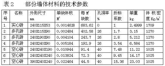几种墙体材料的技术参数和砌筑技术参数见表2和表3。