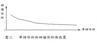 几种墙体材料的砌砌筑时的技术参数见表3,单块墙材体积和砌体中砖缝(水泥砂浆)的关系曲线见图2。