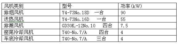 单条窑风机配备表
