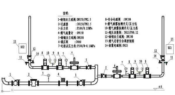 4)须有一个快速关断阀—用于故障时关断燃气支路,防止发生重大事故。