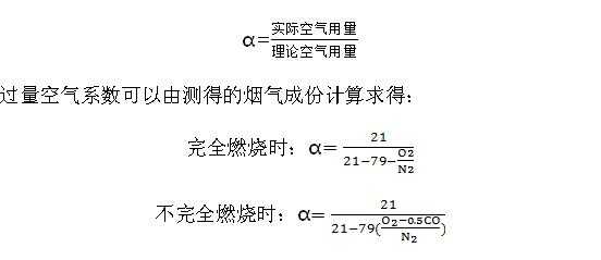过量空气系数又称过剩空气系数。为了使燃料趋于完全燃烧,实际上要供应比理论值多的空气量。多出的那部份叫过量空气(过剩空气)。实际空气用量与理论空气用量之比值称为过量空气系数,用符号α表示。即: