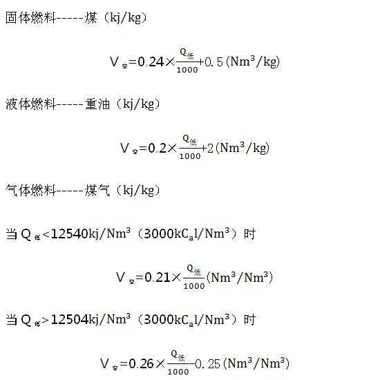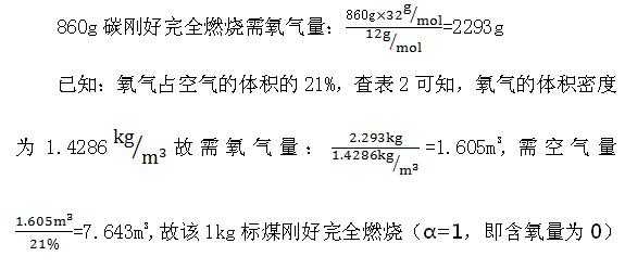 要获得过量空气系数,首先应算出理论空气量,现就燃烧1Kg标煤的理论空气用量算法举一例: