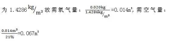 需空气量总和为:硫(S)燃烧需空气量+碳(C)燃烧需空气量=0.067m3+7.643m3=7.710m3(折标准状态)。与表1所示数据相近。
