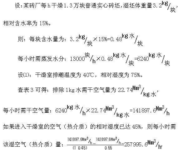 设⑵:干燥室排潮温度为40℃,相对湿度为95%。