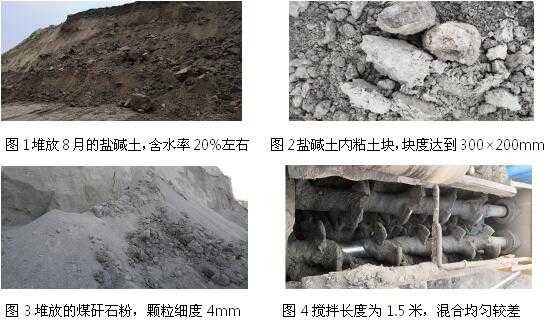 盐碱土堆放时间:8个月、含水率20%、其中粘土约70%,硅质细粉料为30%。