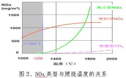 2、NOx与燃烧温度的关系